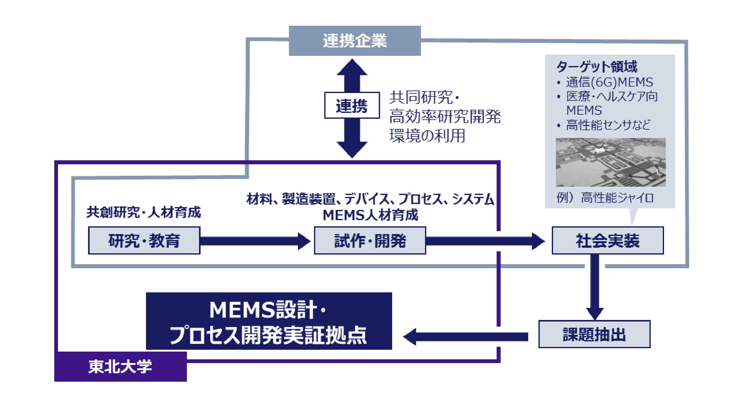 “ミスター半導体”と称された西澤潤一博士が名誉所長を務めた半導体研究所だった建物を活かし1,800㎡のクリーンルームを有し、MEMSを中心とした半導体製造装置を150台以上整備しています。